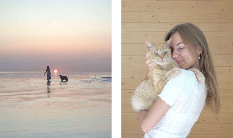 In mijn vrije tijd zoek ik graag de rust en inspiratie van de natuur op. Je vindt mij wandelend in het bos met mijn lieve hond, genietend van de zee, reizend door de bergen of werkend in onze kleine moestuin.