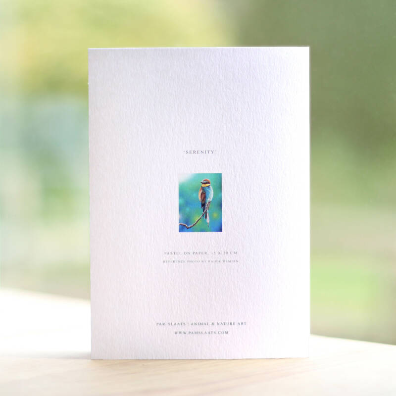 Op deze wenskaart staat mijn pasteltekening ‘Serenity’ afgebeeld.